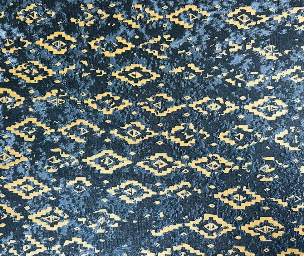 - Midnight Blue & Mustard: A deep blue backdrop with contrasting ochre-mustard details like swirling snakes and keys.